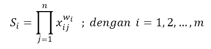 Metode Weighted Product menggunakan perkalian untuk menghubungkan rating atribut, dimana rating setiap atribut harus dipangkatkan terlebih dahulu dengan bobot atribut yang bersangkutan. Proses ini sama halnya dengan proses normalisasi.